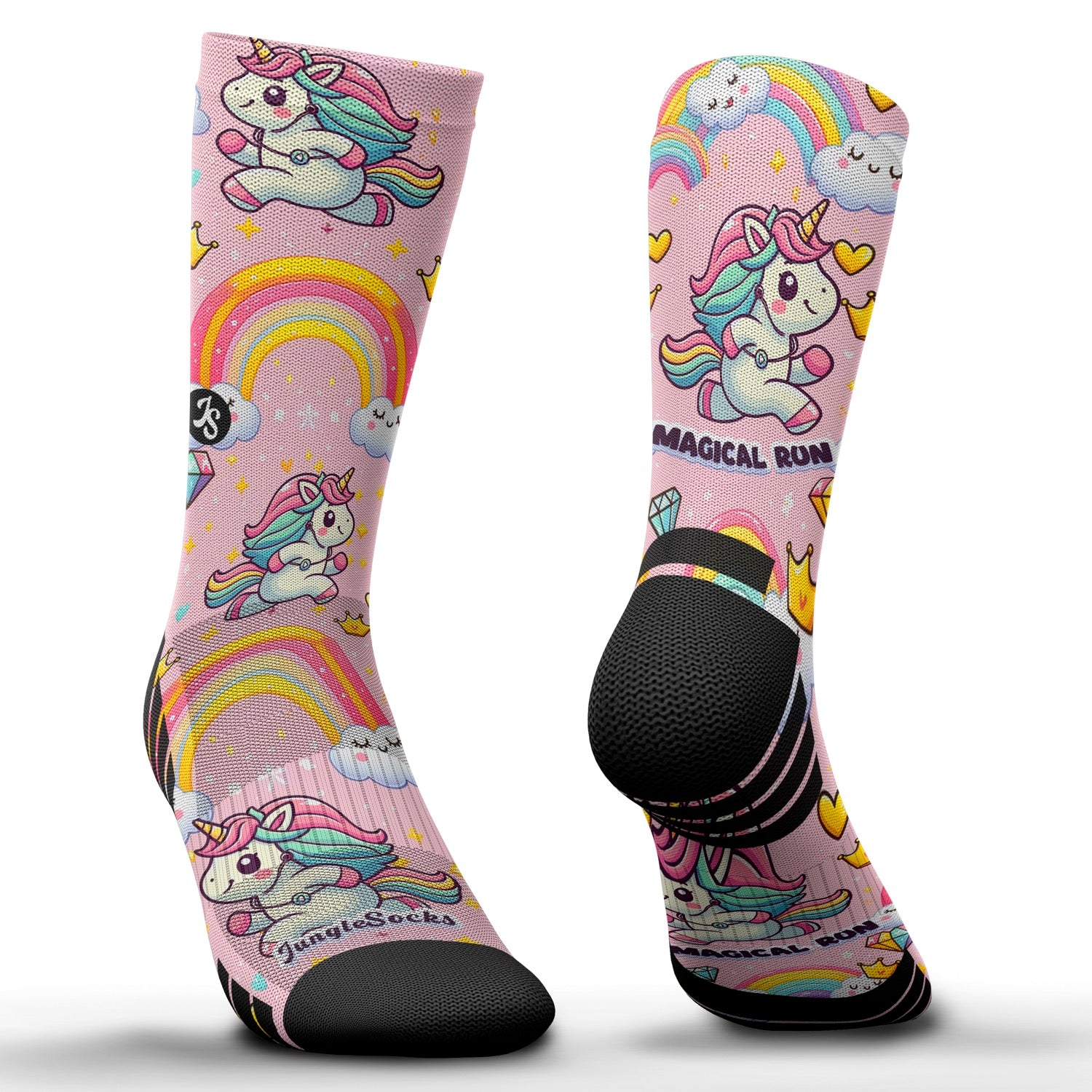 Um unicórnio com uma playlist motivadora e tecnologia de elite: estas meias técnicas criam arco-íris enquanto corres. E esse unicórnio? É tão fofinho que me quero morreeeeer!